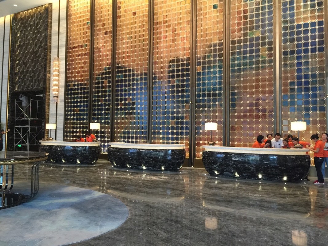 Paredes de cortina de cristal, fuentes, puertas, tabiques, tableros de la mesa, mostradores de recepción